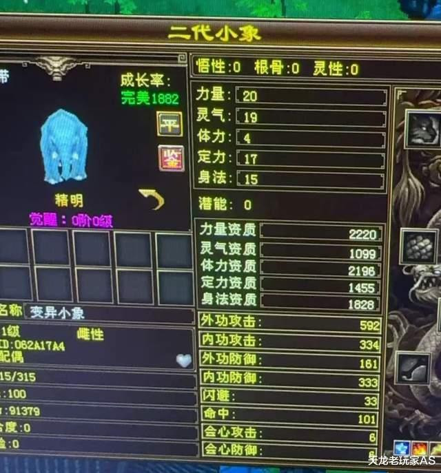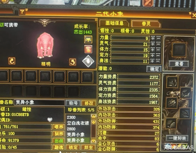 同样是精明粉色小象,可惜成长率未知——按照天龙惯例,未知一律按杰出来算。