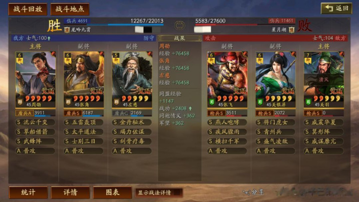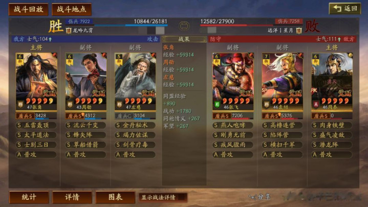 另外,还有一点需要注意,相比锋矢阵,武锋阵的千机盾由于挑拨效果,面对摧锋断刃的时候,降伤的效果大概率会嘲讽到周劭身上,进而保护张角的输出。