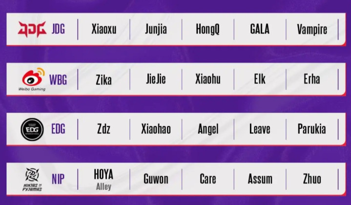 WBG和JDG两支队伍则派出了全部主力,因为两支队伍都是以几乎重建的方式重组了战队配置,是更需要提前打打比赛热热手的。